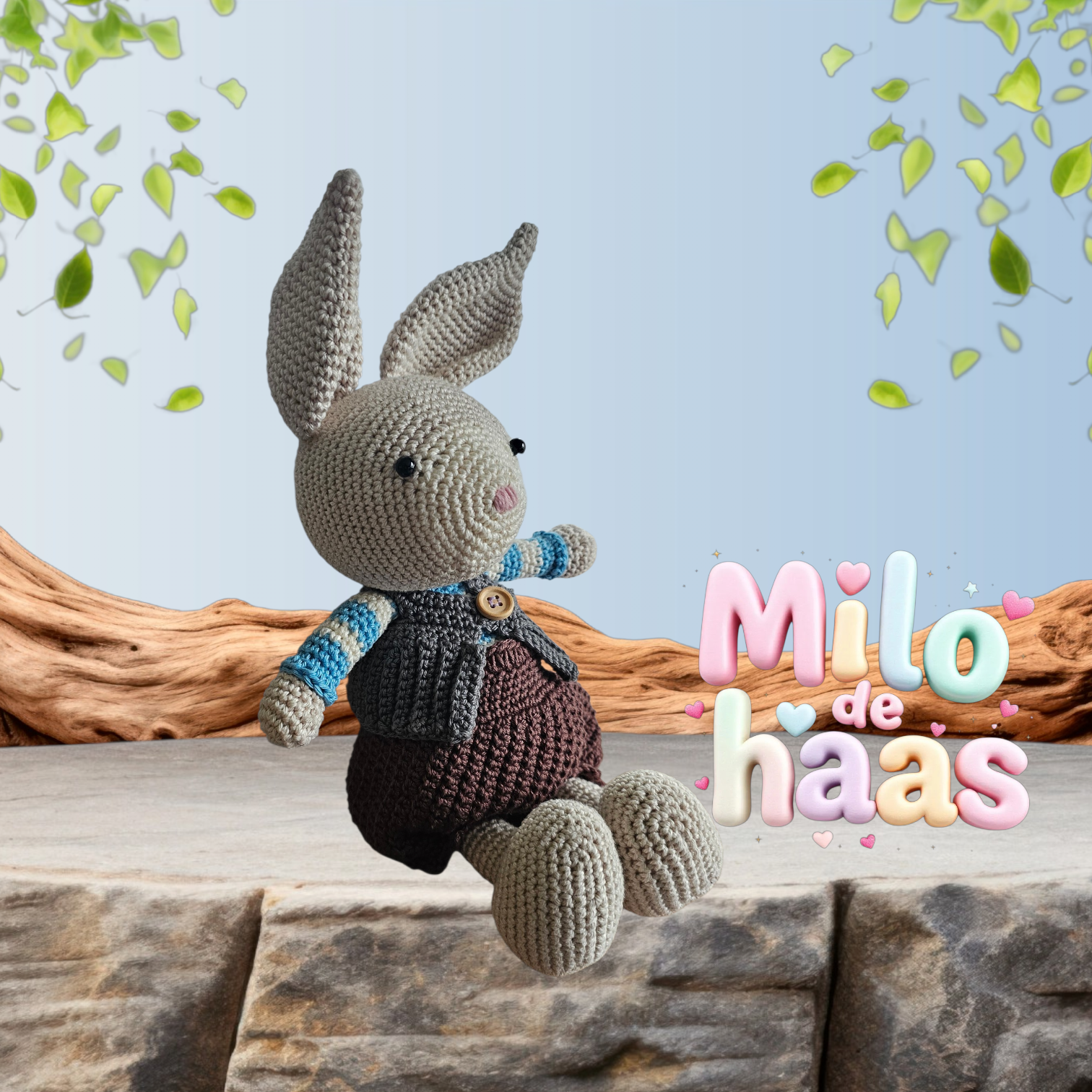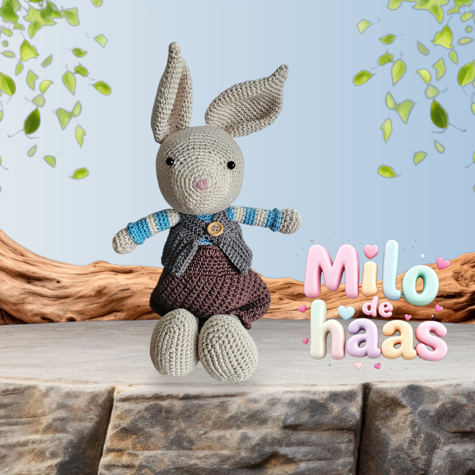 Maak kennis met Milo de Haas, een lieve en unieke knuffel die met de hand is gehaakt van hoogwaardig Scheepjes Catona katoen. Met zijn zachte uitstraling, lange oortjes en schattige outfit verovert Milo meteen ieder hart.